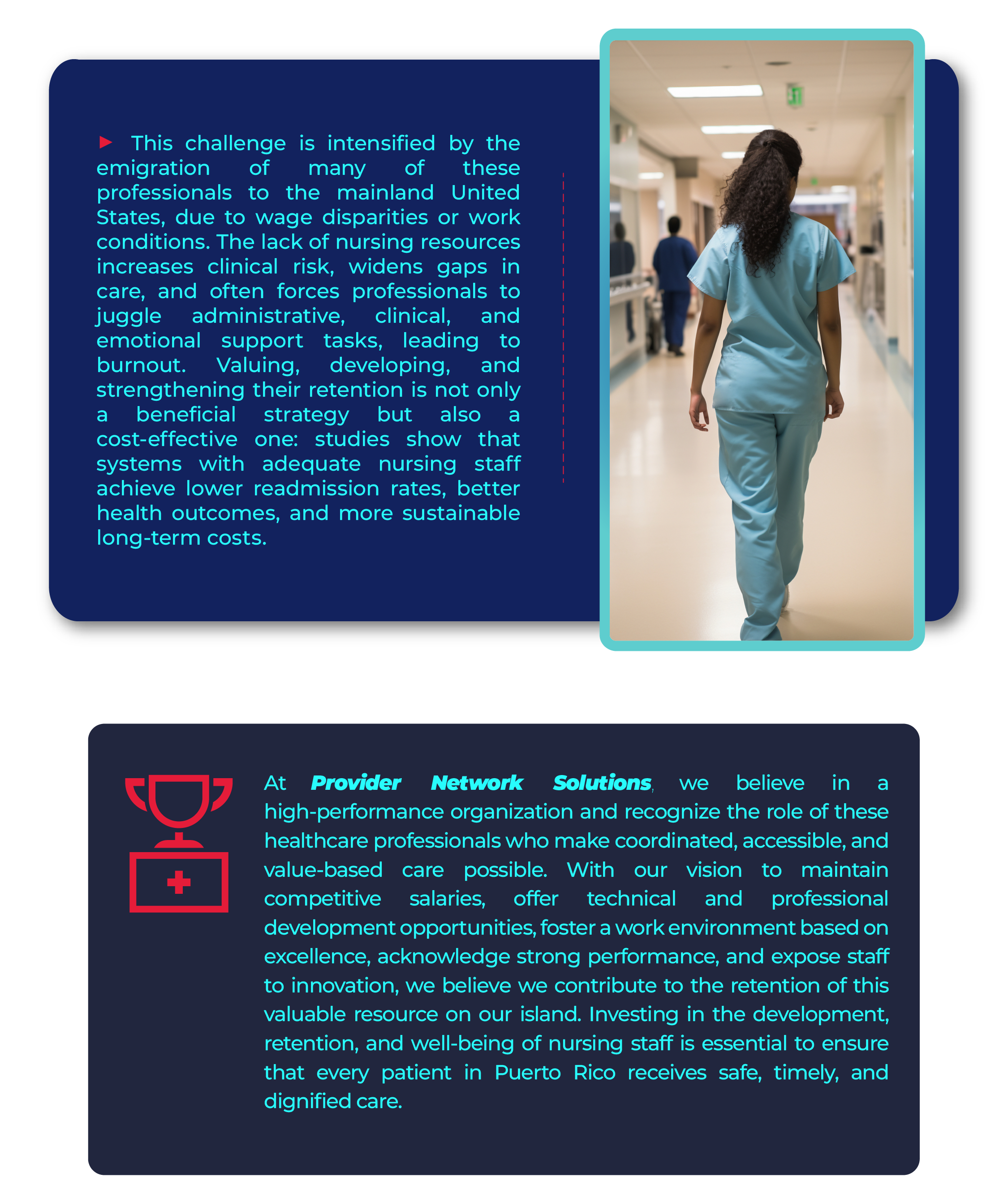 In Puerto Rico, the shortage of nurses represents both a challenge and an opportunity to rethink the value of these professionals within the healthcare system. Beyond their caregiving role, nurses are strategic players in prevention, education, and patient coordination. Retaining their talent is not only urgent: it is key to building a more resilient, humane, and efficient system.