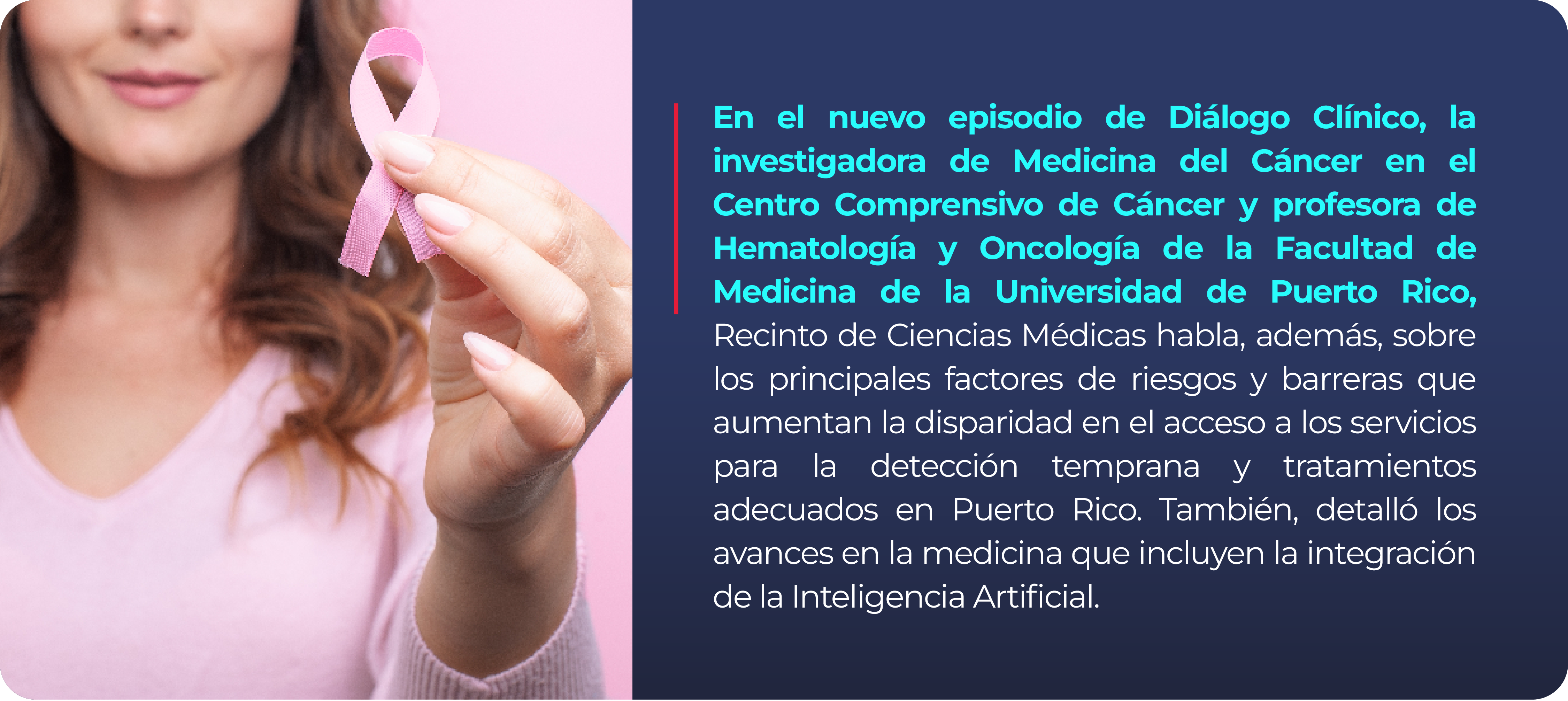 Dentro de ese marco, en un esfuerzo de responsabilidad social para crear conciencia, educar y prevenir a la ciudadanía sobre el cáncer del seno y alineados al compromiso de Provider Network Solutions de Puerto Rico (Provider PR) con la red de proveedores de Puerto Rico de discutir temas importantes en la salud pública, El Chief Strategy and Clinical Officer de Provider PR, Dr. Eddie Ortiz conversó con la hematóloga oncóloga, Dra. Maribel Tirado Gómez sobre la epidemiología, el manejo clínico y los retos de la industria en Puerto Rico para prevenir, detectar y tratar el cáncer de mama.