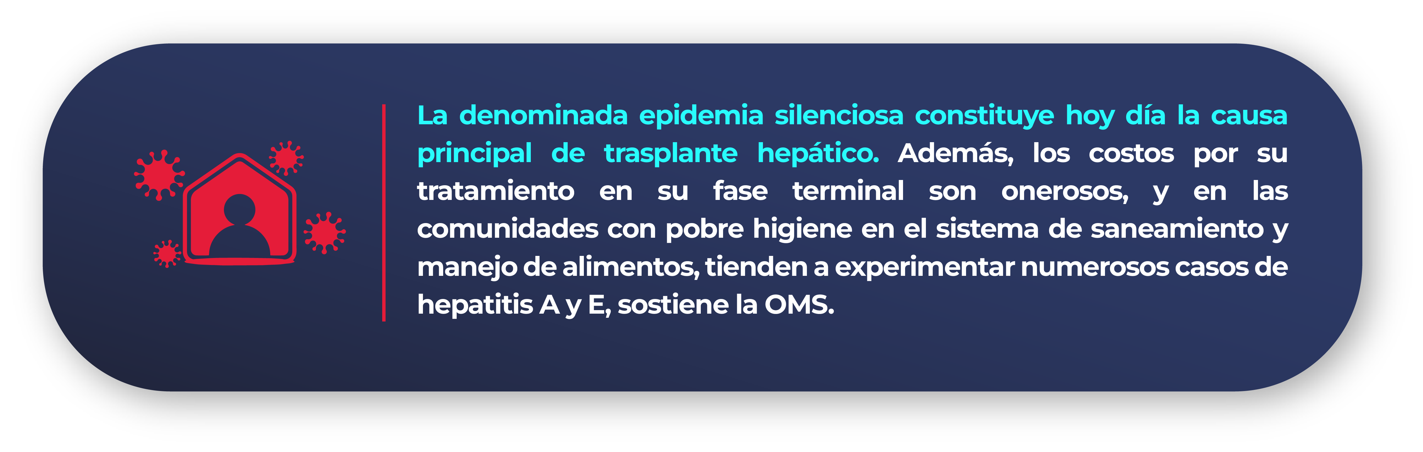 Hoy día aún fallecen a causa de la hepatitis viral 1 millón de personas anualmente, ya sea por complicaciones hepáticas, que incluyen el cáncer de hígado, la cirrosis hepática (57%) y el cáncer hepático primario (78%), como consecuencia de la infección por el VHB o el VHC. El mayor reto sigue siendo que la mayoría de las personas infectadas desconoce que tiene el virus y su situación de riesgo, y cuando son diagnosticadas, pudieran estar frente a un serio panorama clínico debido al paso del tiempo luego de su contagio.