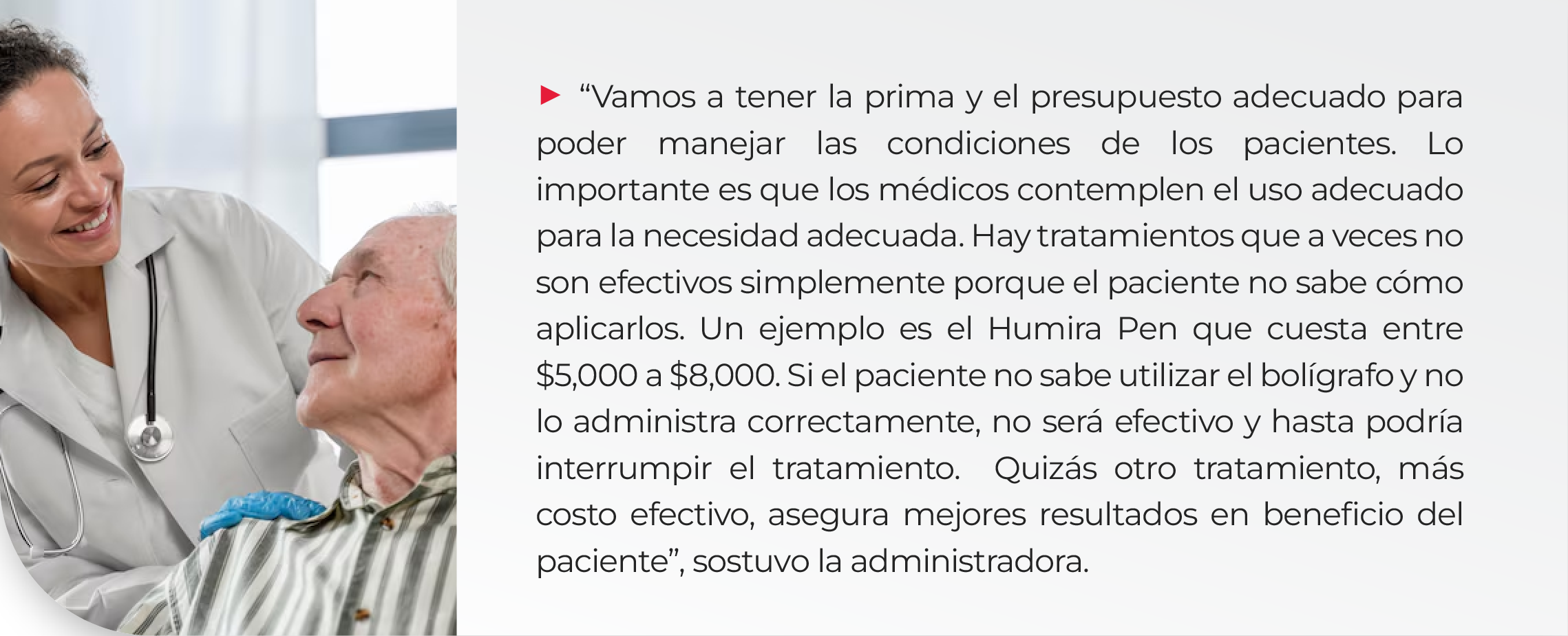 “La reducción en el precio de medicamentos puede liberar fondos en el presupuesto de salud, permitiendo la redistribución de recursos hacia otros servicios o necesidades. El manejo costo efectivo de los tratamientos ayudará a obtener mayores cubiertas en otros servicios que, actualmente, no están incluidos porque los medicamentos absorben todo el presupuesto. Es importante que tanto los médicos primarios, que son los que monitorean las condiciones recurrentes, como los especialistas, tengan esto en perspectiva y eduquen a sus pacientes y les informen sobre el impacto de estos cambios en otros servicios”, explicó Rivera.