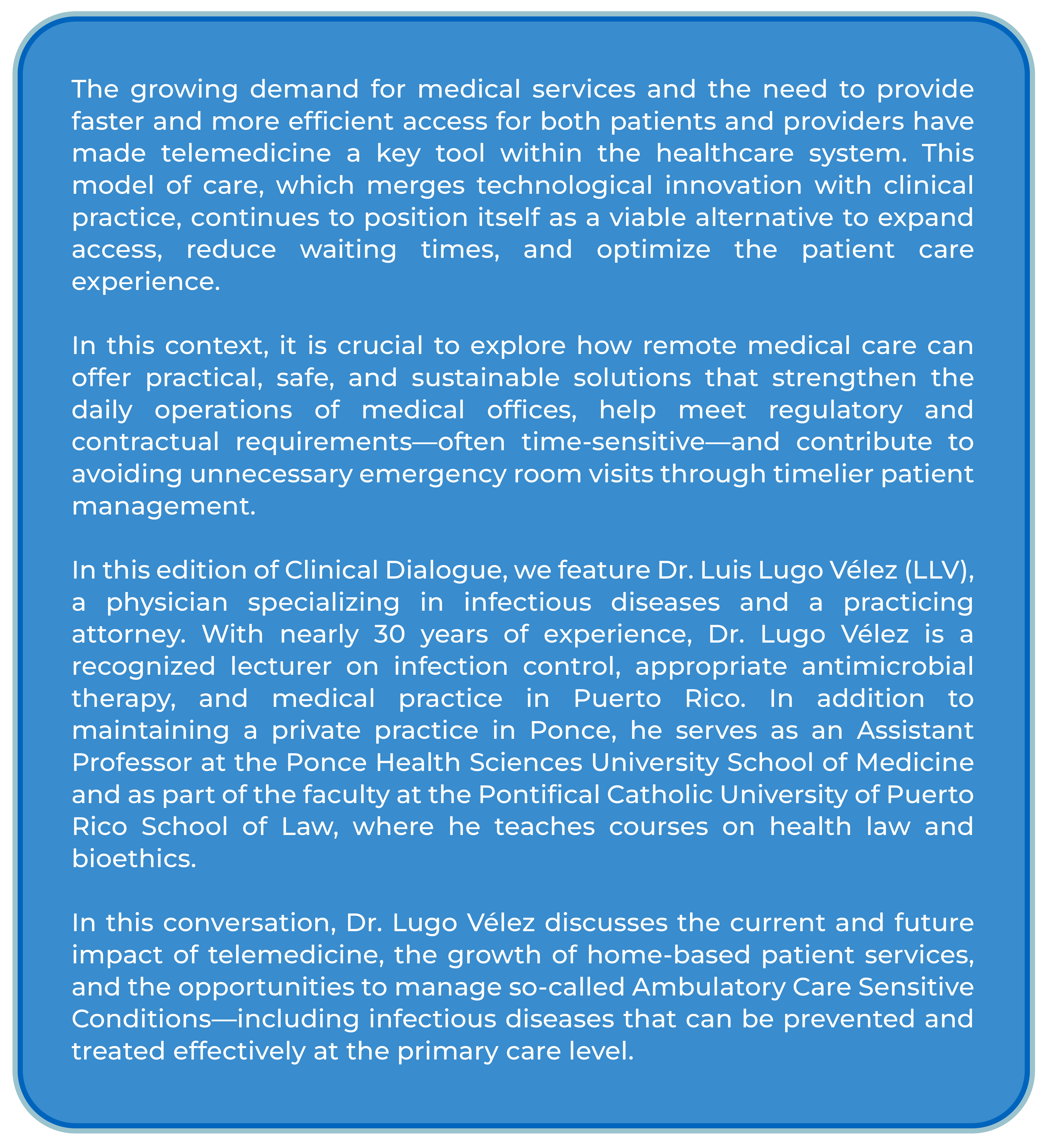 ▶ LLV: Telemedicine emerged as an alternative in medical practice in the 1970s, when computers, the internet, and mobile phones began to develop. However, its boom as a medical practice came after the COVID-19 pandemic, when we were confined, medical offices were closed, but patients still had healthcare needs. As a way to continue providing necessary services, telemedicine became essential—allowing physicians to contact patients, assess their needs, and find ways to address them. For example, issuing medication refills, providing COVID-19 guidance, or addressing other health conditions.