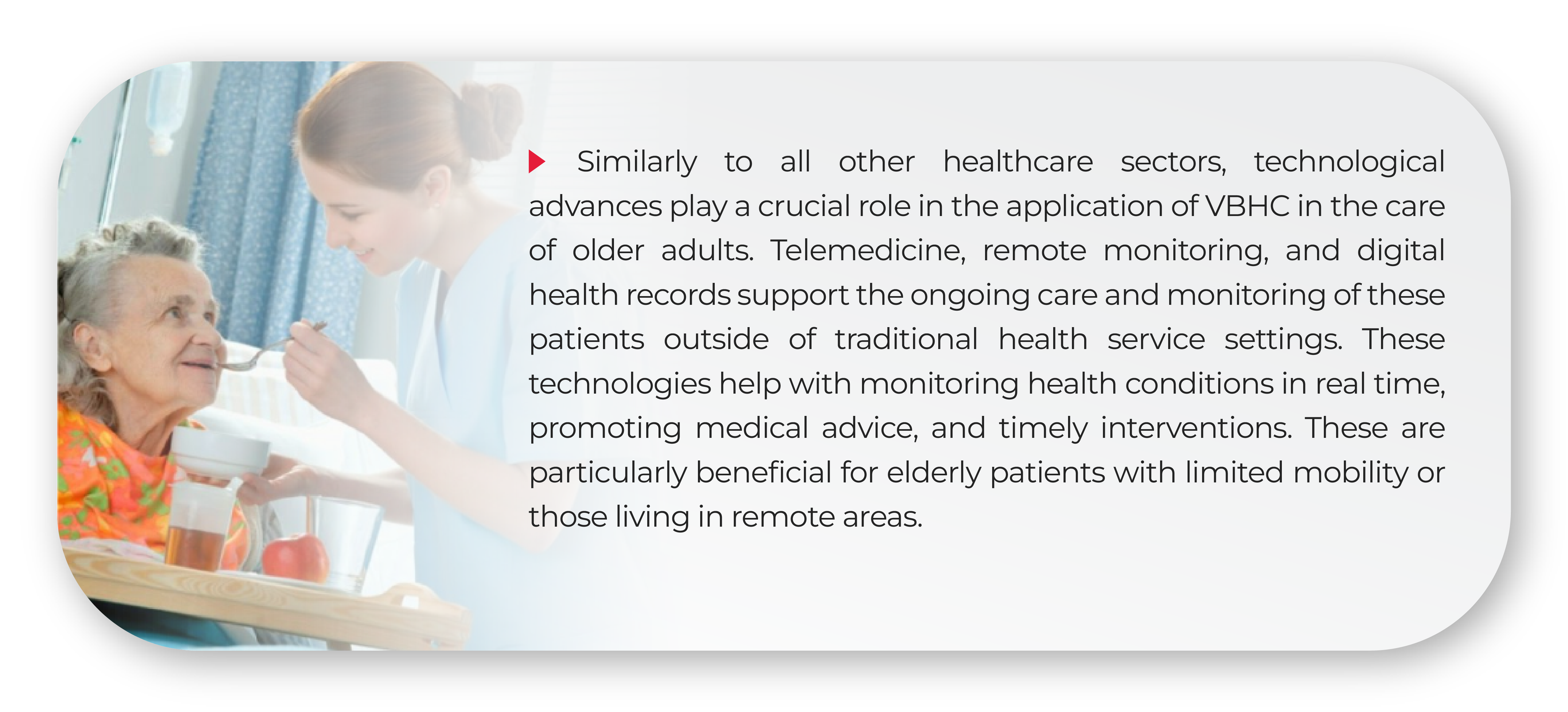 Additionally, under VBHC, there is an emphasis on preventive services and early intervention. These are key to managing health problems in older populations. This may include more frequent screenings, preventative health measures, and early treatment of conditions before they require more intensive and costly interventions. Preventative strategies not only improve patients’ health, but are also cost-effective in the long term, reducing the need for emergency care and invasive procedures.